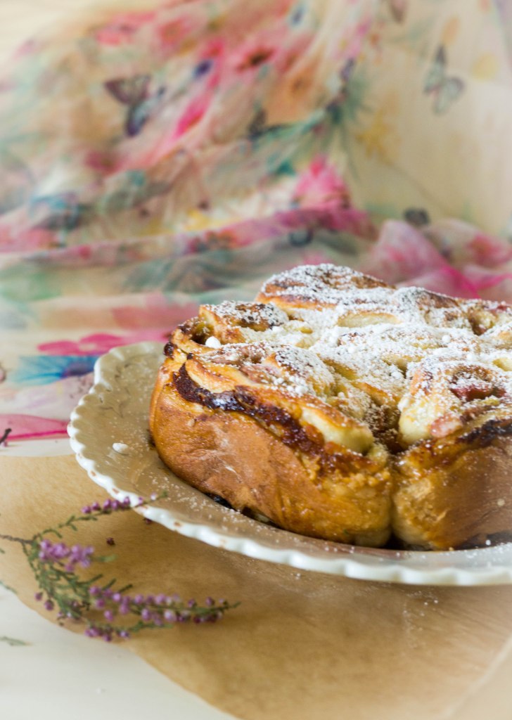 This is one of my favourite cake. I love mellow biscuit and soft bottom. I love a combination of tart rhubarb or apples and sweet dough.