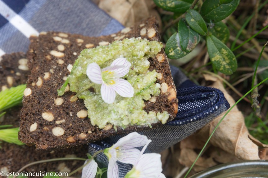 Classical recipe, pesto, with Estonian twist. For base I used tart and fresh spruce tips, combined with hazelnuts and local hard cheese.