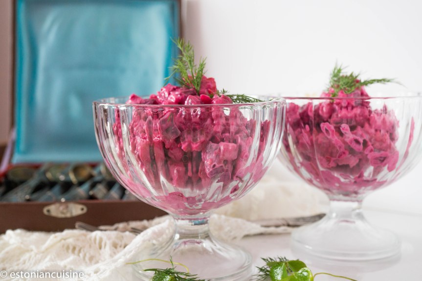 Rosolje is a traditional salad, as Estonian Potato Salad, where all families has their own recipe.
