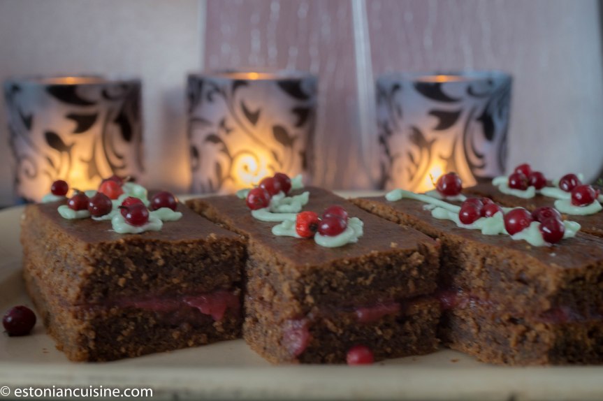 Juicy and fruity cowberry- apple sauce complements very well gingerbread flavour and reduce sweetness ( and makes it healthier dessert :))