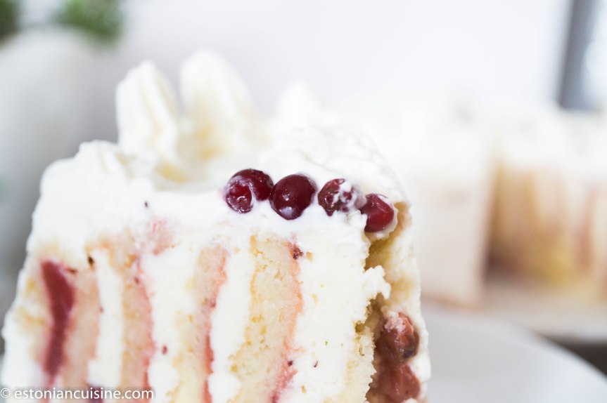 The Vertical Layer Cake with Cottage Cheese Chocolate Cream and Cranberry Filling. Kodujuustu- valge šokolaadi jõhvikakook