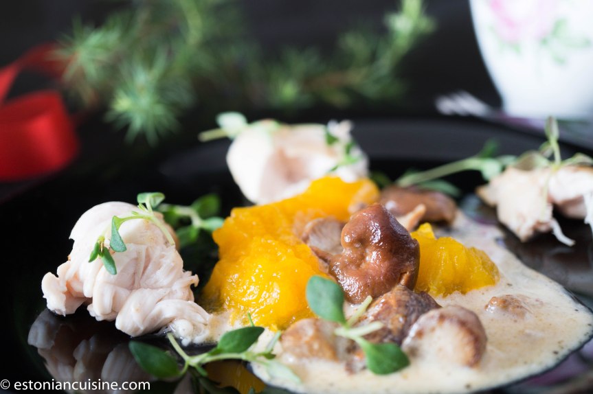 Chicken fillet with juniper berries and mushroom. Kanafilee kadaka ja seentega